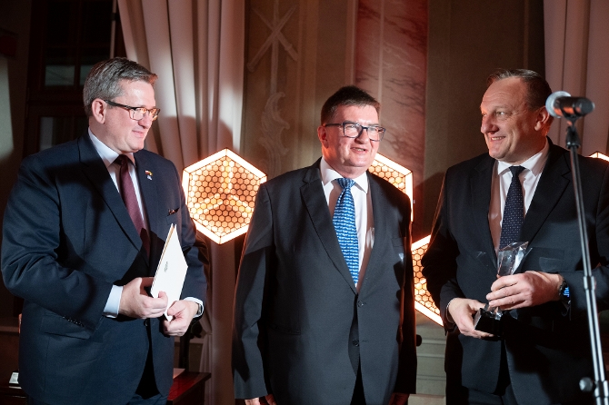 Nagrodę dla PWPW odebrali: Zygmunt Kostkiewicz, prezes Zarządu PWPW, Grażyna Rafalska, dyrektorka Biura Sprzedaży i Monika Pietkiewicz, główna specjalistka ds. realizacji kontraktów.
